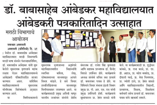 Dr. Babasaheb Ambedkar Mahavidyalaya , Amravati was established in 1972 by Hon’ble Late Shri. Dadasaheb Gawai, member of Rajya Sabha and Ex-Governer ( Kerala & Bihar States). It is a Grant-in-aid college, affiliated to SGBAU Amravati. It was recognized by UGC in 1994 under 2(f) and 12 (B) of the UGC Act 1956.